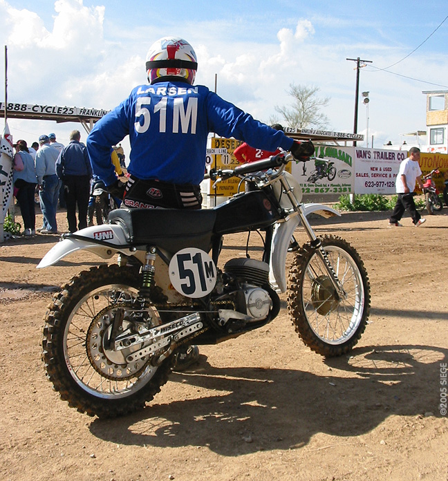 Sunday was Vintage. Giles Nelson offered me his CZ250, and I couldn't turn him down. The bike was superb, and the only problsm I had at all was learning to rev the bike. My own CZ400 Animal pulls off the bottom like mad, and just had to break the habit of using the torque at low revs. I entered 250 Sportsman, which really is a well contested class, and coming off 4 months of recovery I really should have entered a slightly easier class. (whatever that means) I got moderate starts in both motos; I chased various riders, finished 6th. Hmmm. For the main I vowed to hold the throttle on longer, and I managed to do much better- felt faster, got my game on. To my surprise I had gone backwards and finished 8th. I wouldn't have managed the 8th overall if I hadn't been on a cool bike. My thanks to Giles for the very kind offer. Of course Dirk got the holeshot & won Classic 250, Bart cleaned up in Classic 125. I saw many old friends who'd I'd never met in person before: Bill Ramsey, Jerry Kelly, Mark Smith, Paul Hefterich... such is the nature of Vintage Motocross. Dave Boydston & Dan Matthews (the track owner) did a really awesome job of the whole weekend- the Cat was working on the track Saturday Night as we fell into bed, and were alreday working on it when we woke up in the darkness of 6am! They were committed! (Or they needed to be committed!) |