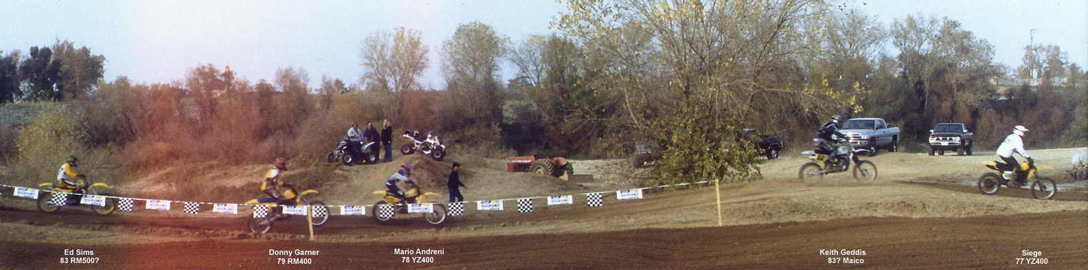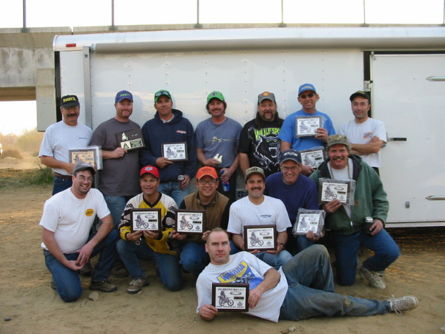 The rescheduling of this race was a source of tremendous annoyance itself as I had driven all the way to the Bay Area for this race last month only to have them call it off a few hours after a two day drive. Rained Out Actually the more specific (ie different) reason given was that they couldnt get the equipment there in time to prep the track. We saw lots of giant equipment driving around at Hollister the next day prepping SOMETHING so that also obviously wasn't the real deal. Hmmmm. I couldnt decide whether to bother coming down for this race- rescheduled for December 8th, not for Hollister, but for E-Street Bridge track in Marysville, east of I-5 near Sacramento. As it later turned out, the race wasnt called off because of Rain. This is a idiotic story, but evidently some cretin on a modern bike with five miles of suspension travel managed to fall OFF his motorcycle when he hit a garden hose (?) on a Wednesday no less, as he roared around a deserted track by himself, and got hurt. He then had to decide whether to lose his shirt, or ruin the sport for everyone, and he chose B), and he sued the owner of the track. The track closed, and all the insurance carriers in California had a fit. So it seems that Hollister was canceled about Insurance, not Rain or Equipment.